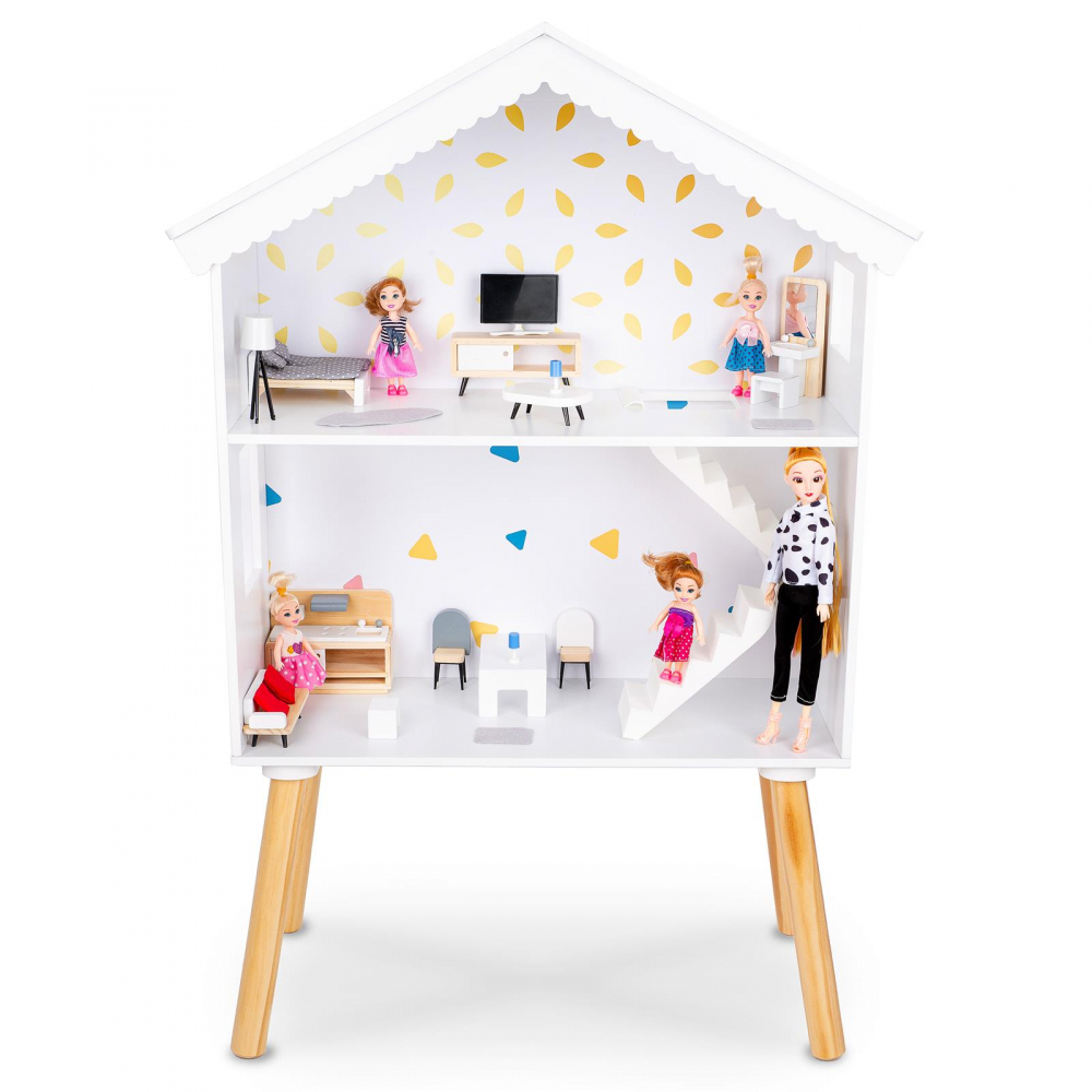 Fetitei tale ii place sa se joace cu papusile? Atunci de ce sa nu ii oferi aceasta casuta de papusi fermecatoare, din lemn, care ii va incanta pe cei mici cu o varietate de culori, modele si functionalitate. Suntem siguri ca in momentul in care copilul o va vedea, se va indragosti de ea.