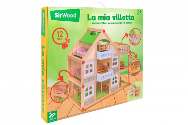 Casuta papusi cu 3 etaje si 4 papusi Globo din lemn