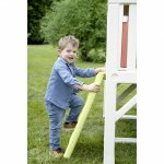 - Aceasta casuta originala se afla pe piloni de inaltimea de 70 cm, datorita carora copii pot avea parte si de un tobogan mare, cu o lungime de 1,5 m
