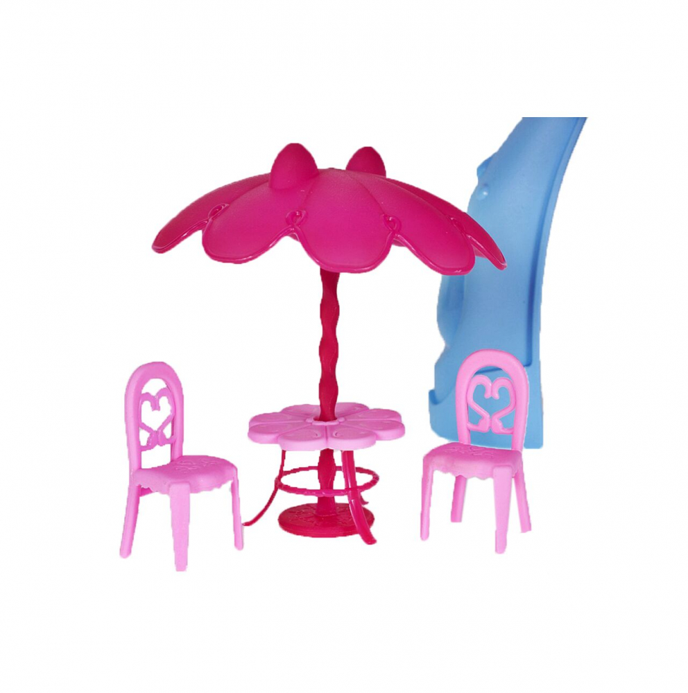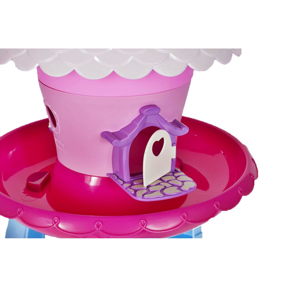 Jucaria este realizataintegral din plastic rezistent, in culori pastelate, roz, mov si albastru.