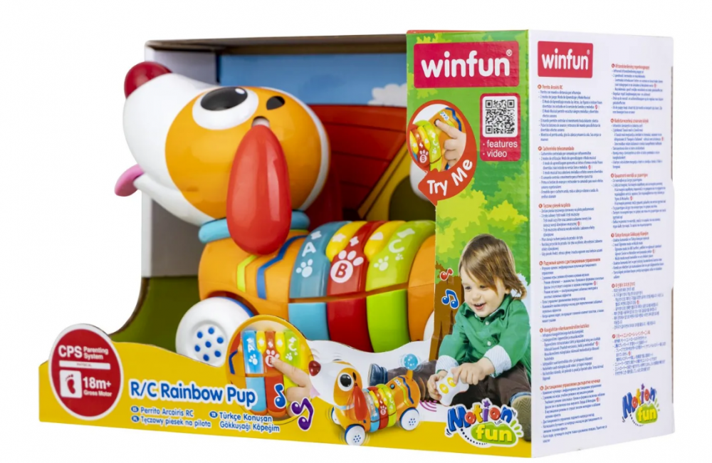 In timp ce interactioneaza cu catelusul, cei mici vor putea sa apese butoanele de pe telecomanda pentru a activa efecte sonore si fraze distractive, consolidand invatarea intr-un mod interactiv si distractiv.