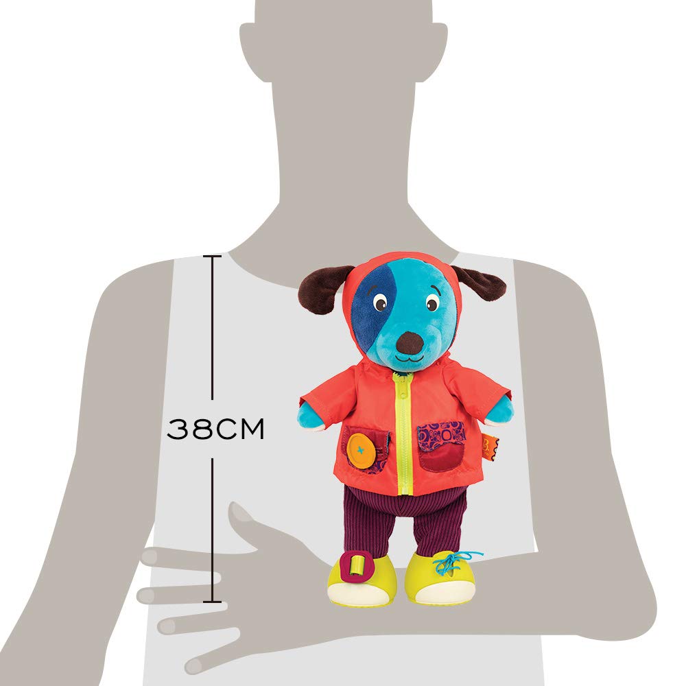 Catelusul B.Toys este o jucarie interactiva senzoriala care va ajuta copilul dvs sa se familiarizeze cu tot sistemul de inchidere pe care il puteti gasi pe haine.