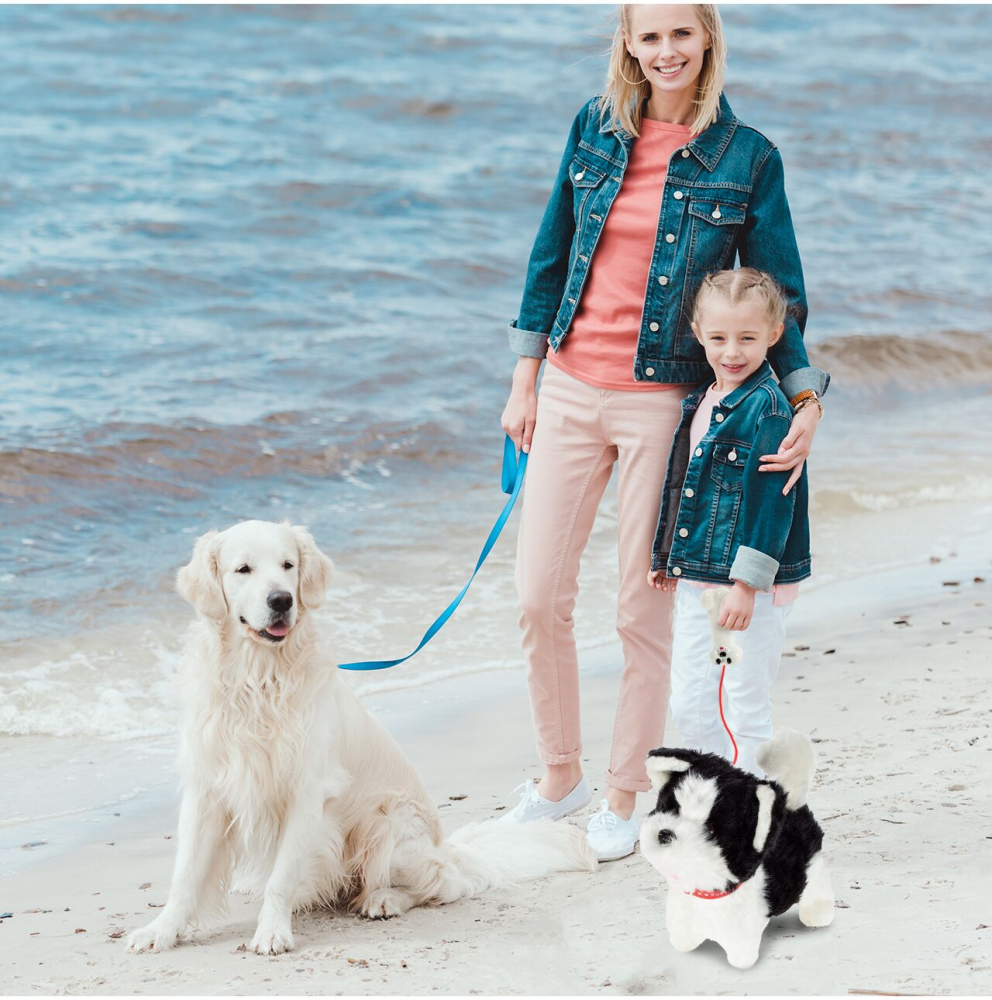 Cu ajutorul lesei tip telecomanda, copiii pot ghida catelusul.