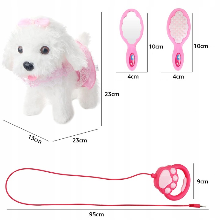 Setul include si un pieptene si o oglinda, asa ca daca catelusul este dezordonat, micul sau tutore il va putea pieptana si mai tarziu ii va arata in oglinda cat de frumos arata.
