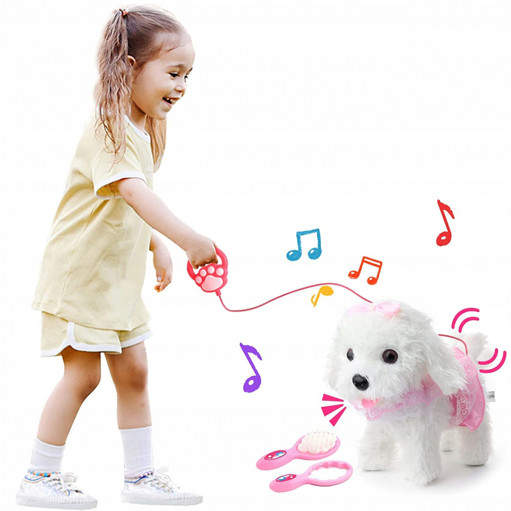 Catelus interactiv din plus cu lesa si accesorii White