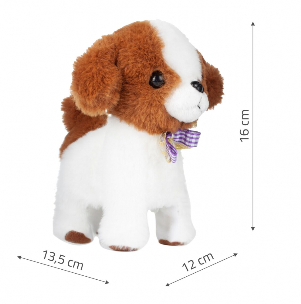 Catelus interactiv din plus pentru copii, dimensiune 13.5 x 12 x 16 cm, latra si maraie cand se deplaseaza