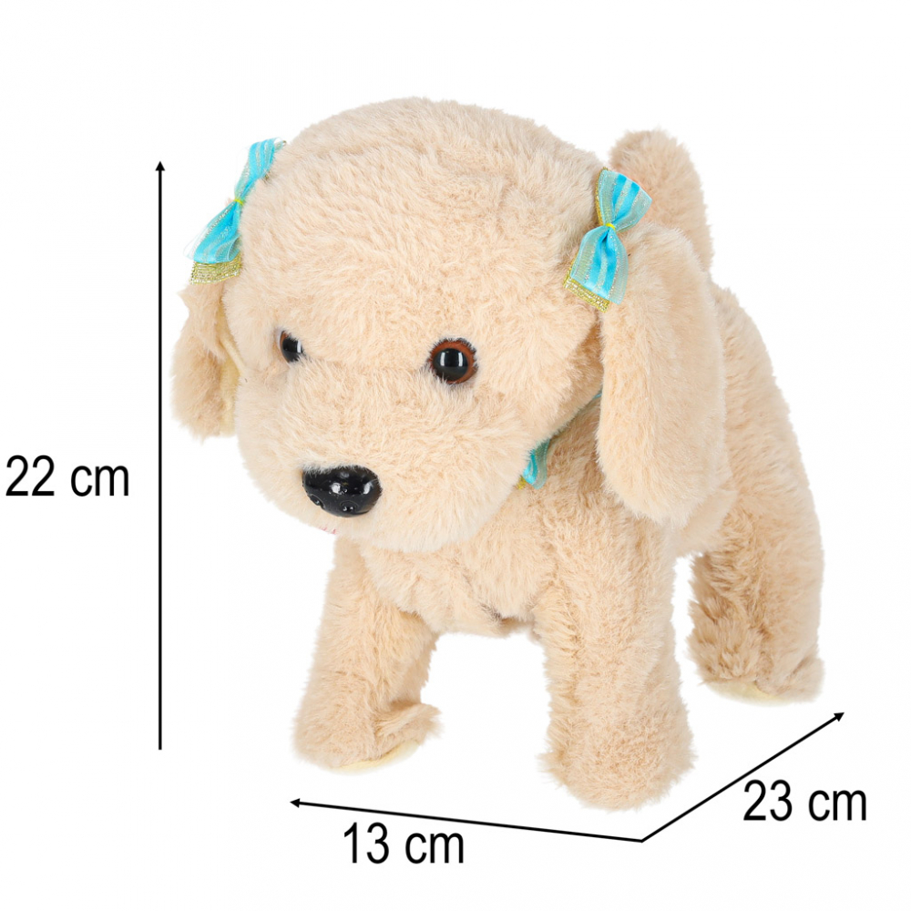 Catelus Pudel interactiv pentru copii din plus, cu lesa, misca din codita, merge, latra, dimensiune 22 x 13 x 23 cm