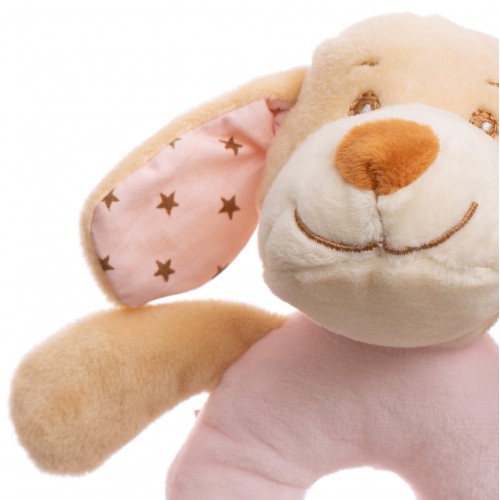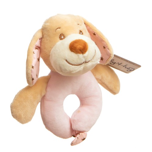 Catelusul zornaitor, roz, marca Baby Hug, este o jucarie haioasa din plus, ideala pentru a fi daruita bebeluselor care adora animalutele din material moale pe care ele sa le poata manevra cu usurinta si care scot zgomote ori de cate ori sunt miscate.