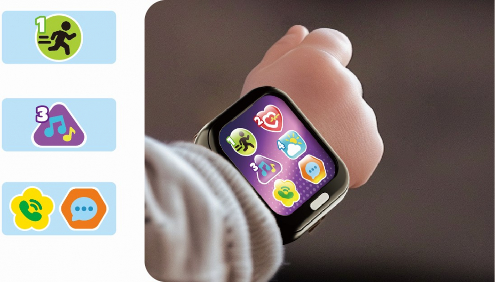 Acest ceas inteligent ofera peste 40 de sunete, melodii si fraze care stimuleaza invatarea si curiozitatea copilului.