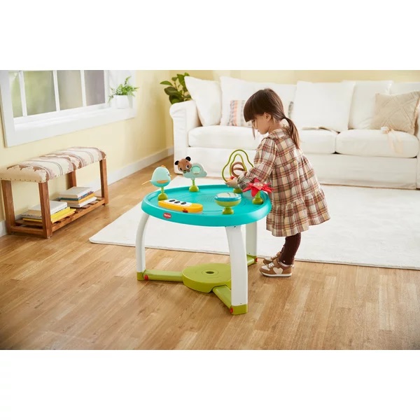 Cu 5 moduri de utilizare, centrul de activitati creste odata cu copilul dvs. - transformandu-se dintr-un centru de activitati inspirator, cu scaun rotativ si jucarii interschimbabile, intr-o masa de joaca distractiva si taburet pentru copii mici.