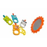 Atasate acestuia, jucariile colorate din plastic, in culori vii, vor incuraja fiecare copil mic sa se joace, in plus, vor stimula simturile si vor sprijini dezvoltarea motorie .
