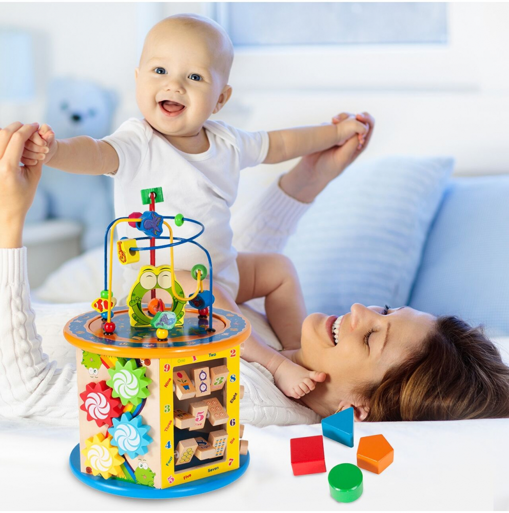 Centru de activitati din lemn cu multiple fete de joc Froggy