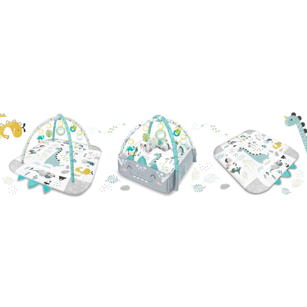 Stii ca... ...la varsta de trei luni, bebelusul tau incepe sa apuce singur obiectele? De atunci, isi dezvolta coordonarea ochi-mana, asa ca este important sa ii ofere o multime de stimuli inca de la inceput. De aceea am adaugat covorasului jucarii multifunctionale care pot fi agatate de manere, zdranganitul sau fosnetul atrag atentia si curiozitatea copilului.