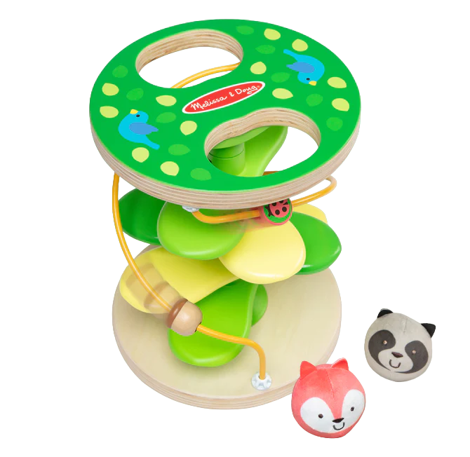 Include turn de casa in copac, cu labirint de margele incorporat si ramuri pentru ca jucariile rotunde sa se prabuseasca; 2 jucarii (raton și vulpe); compatibil cu alte seturi de joaca.