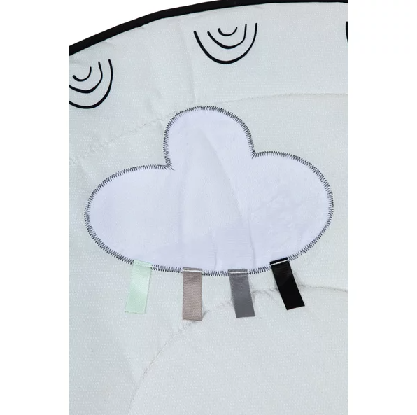 • 3-5 luni+ : Dezvoltarea Abilitatilor Motorii Fine. Atingerea mainilor si a picioarelor bebelusului de difertele texturi ale centrului de joaca ajuta la dezvoltarea abilitatilor motorii fine. Panglicile din satin ale saltelutei, norul de plus si alte elemente imbogatesc experienta tactila a bebelusului si ajuta la exersarea diferitelor tipuri de prindere.