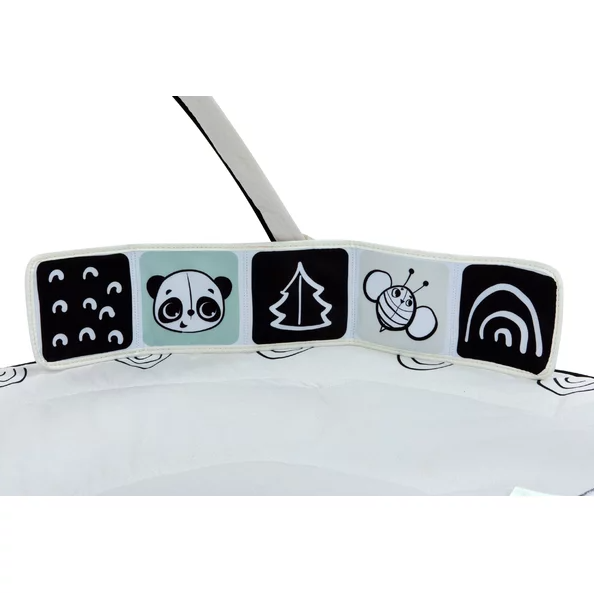 • Salteluta moale cu suport si jucarii in culori alb-negru, realizata din materiale de inalta calitate, dublu captusita, lavabila la masina.