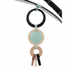 • Jucarie din lemn natural cu zornaitoare si panglici din satin.