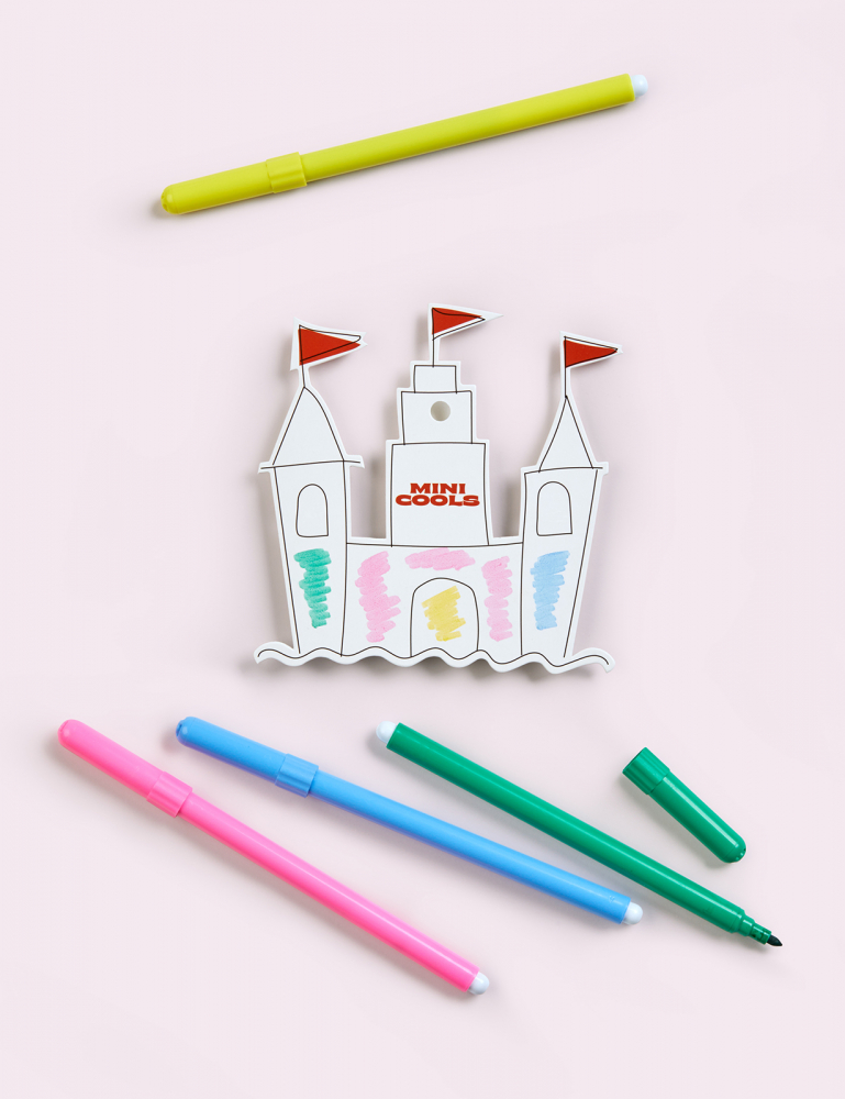 Toate produsele sunt prezentate pe un carton care poate fi folosit ca planșă de colorat pentru copii și ambalate într-o cutie de carton.