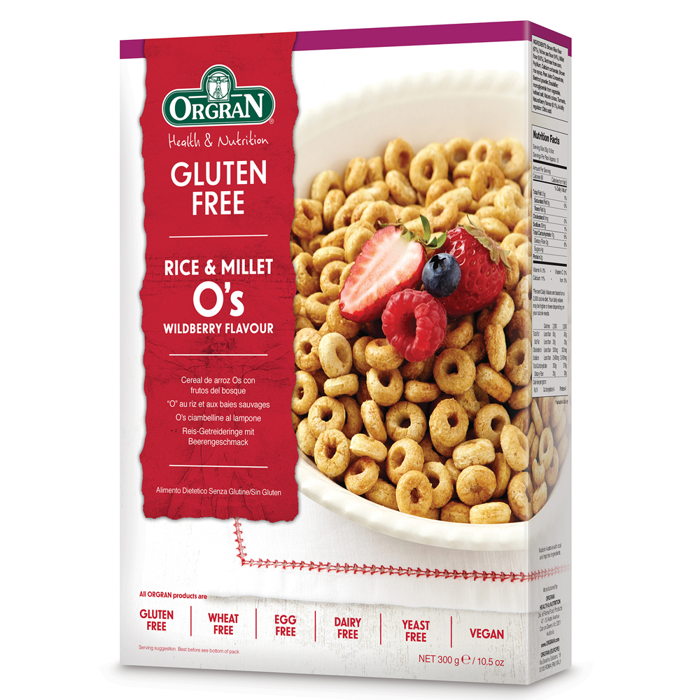 Cereale din orez si mei cu aroma de fructe de padure de la ORGRAN sunt fabricate astfel incat sa corespunda nevoilor nutritionale speciale ale persoanelor cu boala celiaca, ale vegetarienilor si, in general, ale persoanelor preocupate de sanatate.