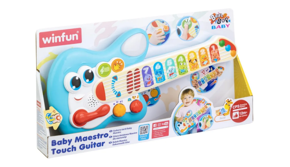 Chitara prietenoasa pentru bebelusi este o jucarie educativa, perfecta pentru cei mici cu varsta de 12 luni si peste.