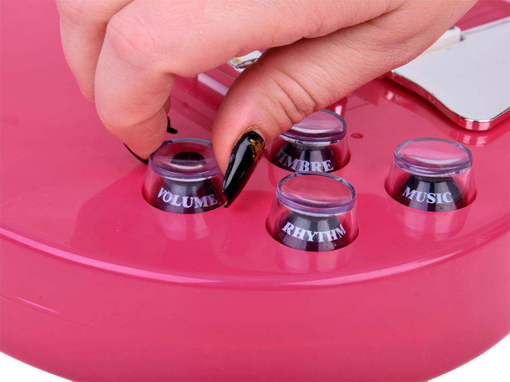 Chitara electrica pentru copii pink, aspect realist si design rock, cu 2 moduri de joc, dimensiune 69 x 23 x 4 cm