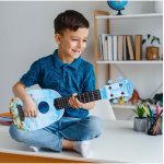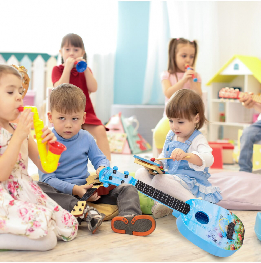 Aceasta chitara e colorata este o modalitate excelenta de a-l introduce pe copilul tau in lumea muzicii.