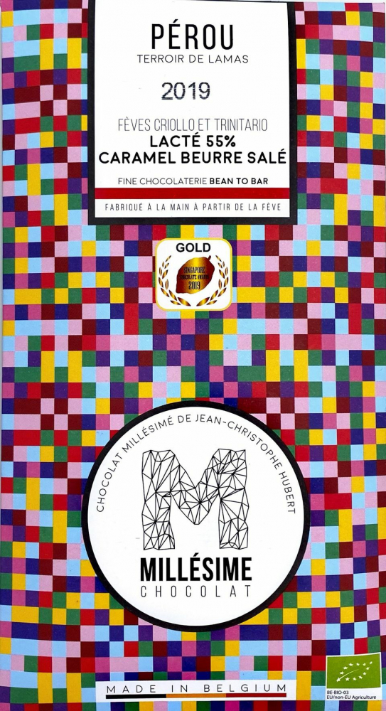 Ciocolata belgiana artizanala Salted Caramel, Perou, eco 70g, Millesime, continut de cacao 55%