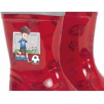 Cizme de ploaie rosii cu tematica fotbal pentru baieti, dedicate tuturor fanilor unuia dintre cele mai indragite sporturi.