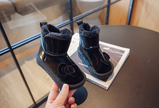 Cizme imblanite pentru fetite, din material impermeabil, cu o floricica aplicata intr-o parte.