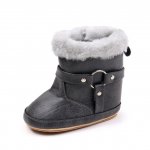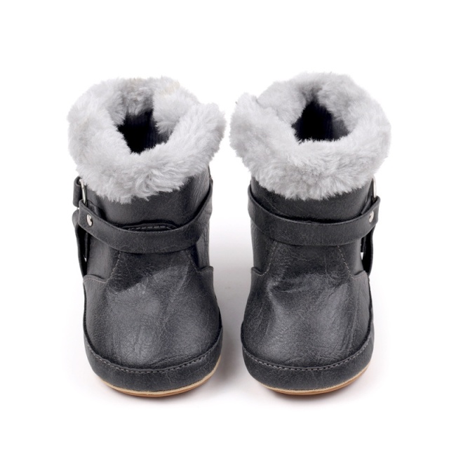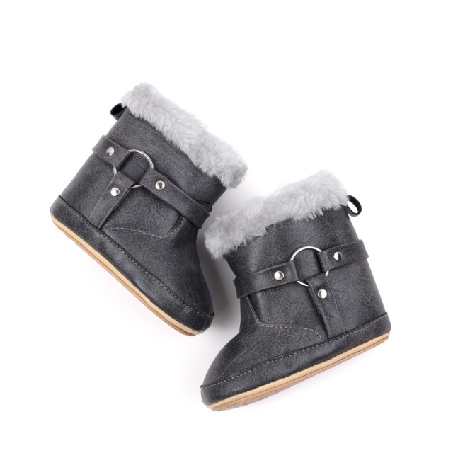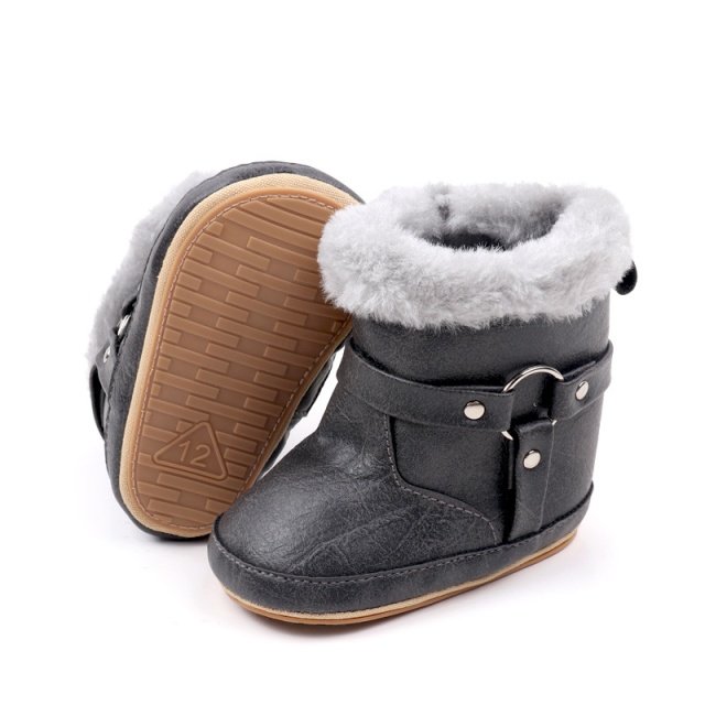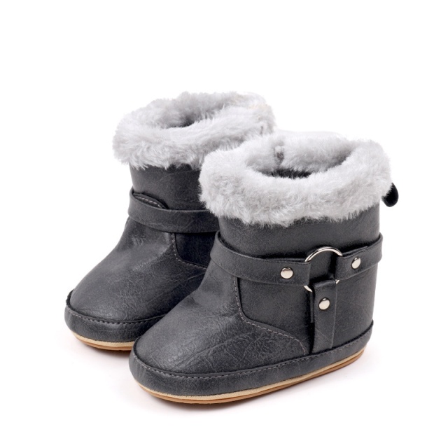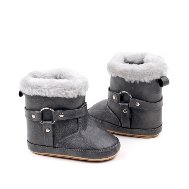 Cizmulite calduroase pentru bebelusi, in nuanta gri, cu un design modern si blanita pufoasa la interior.