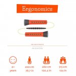Lungimea se ajusteaza de la 0,3 la 3 m si poate fi utilizata de copii de la 110 cm inaltime pana la adulti sau grupuri.