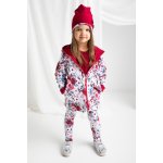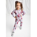 Pantalon pentru fetite realizat din bumbac alb cu imprimeuri florale si o cantitate mica de elastane astfel incat materialul nu se deformeaza si este placut la atingere. La sold este prevazut cu o banda elastica fina, care nu comprima burta copilului.