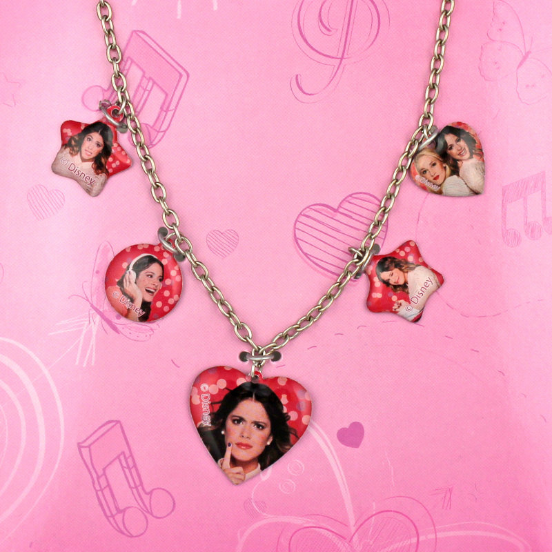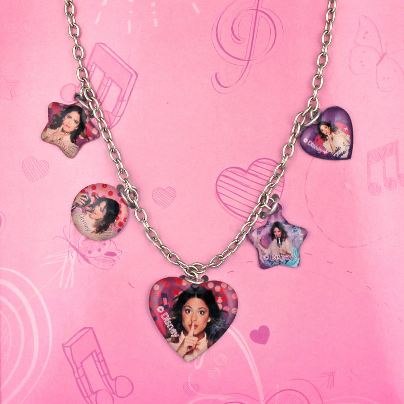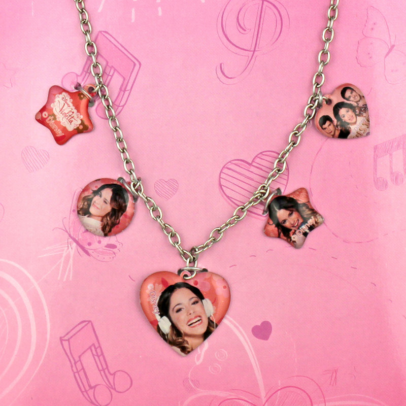 Un incantator colier din metal avand cinci pandantive cu personaje din filmul serial Violetta care poate fi un cadou ideal pentru fetitele cochete.