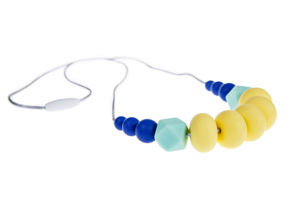 Colier dentitie din silicon alimentar non-toxic, fara BPA, ce poate fi purtat de mamici si rontait in siguranta de bebelusi. Acesta este potrivit oricarei tinute, putand fi purtat atat afara, in parca sau in vizite, cat si in interiorul casei, captand atentia copilului dvs.
