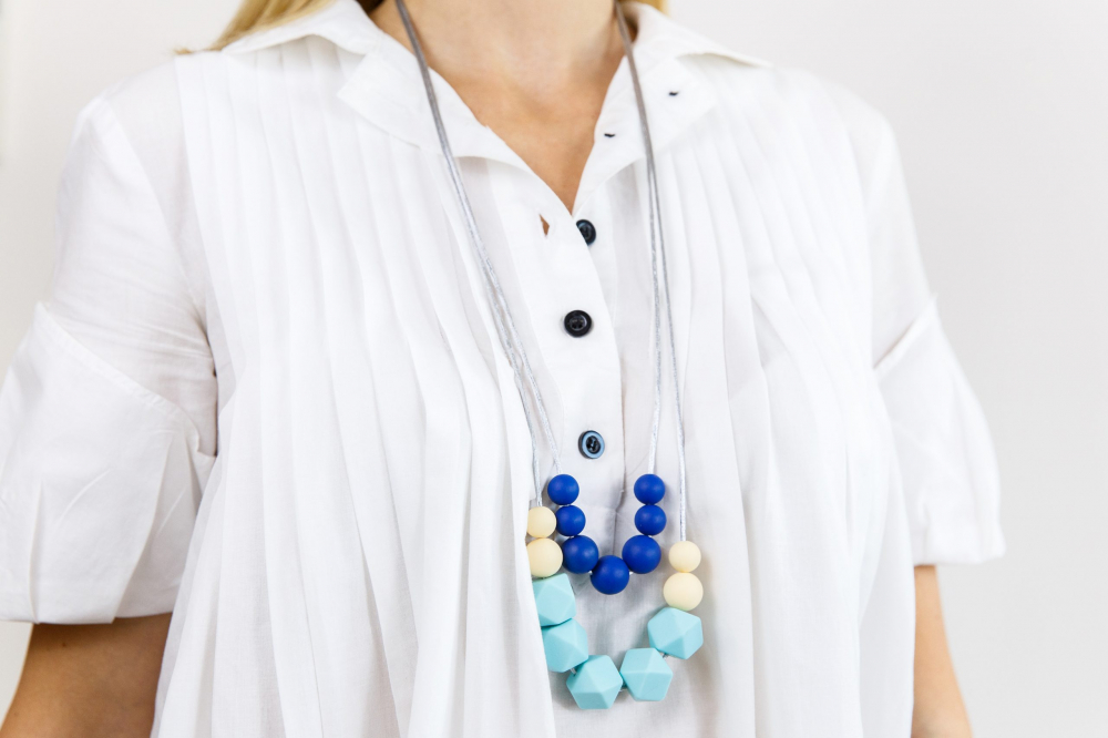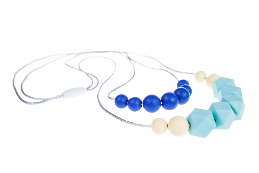 Colier pentru calmarea durerilor eruptiei dentare din silicon alimentar non-toxic, fara BPA, ce poate fi purtat de mamici si rontait in siguranta de bebelusi. Acesta este potrivit oricarei tinute, putand fi purtat atat afara, in parc sau in vizite, cat si in interiorul casei, captand atentia copilului dvs.