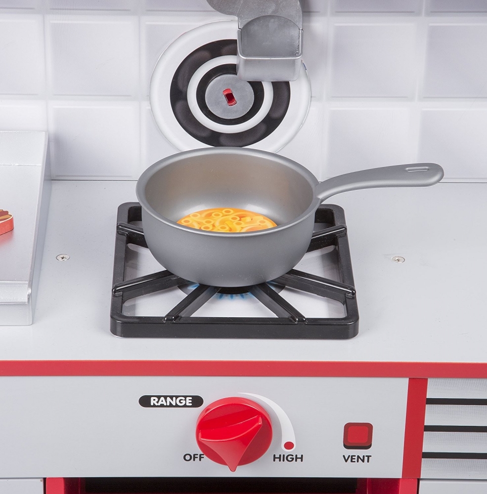 Este inclusa o placa de tort rotativa pe tejghea si un semn cu cleme pe o parte pentru a tine meniurile.