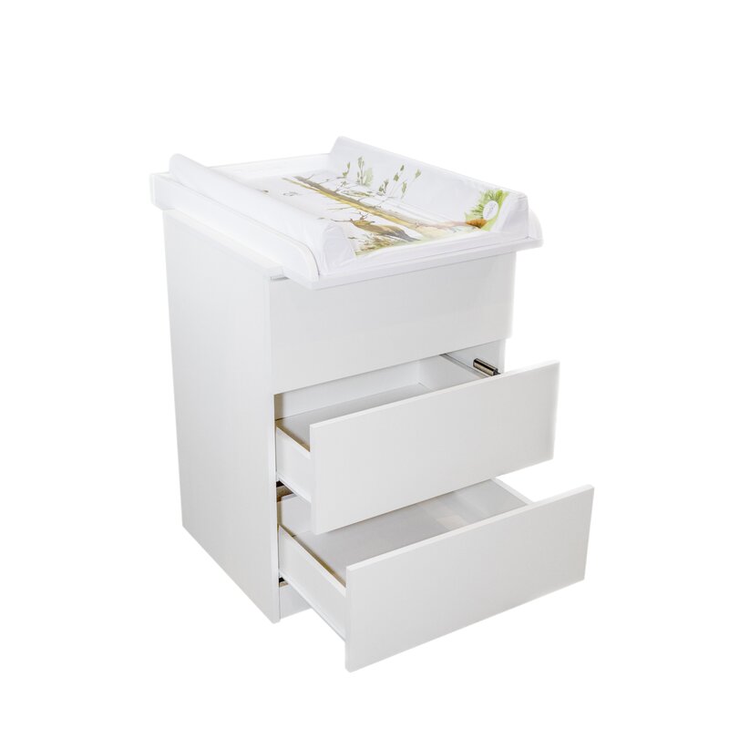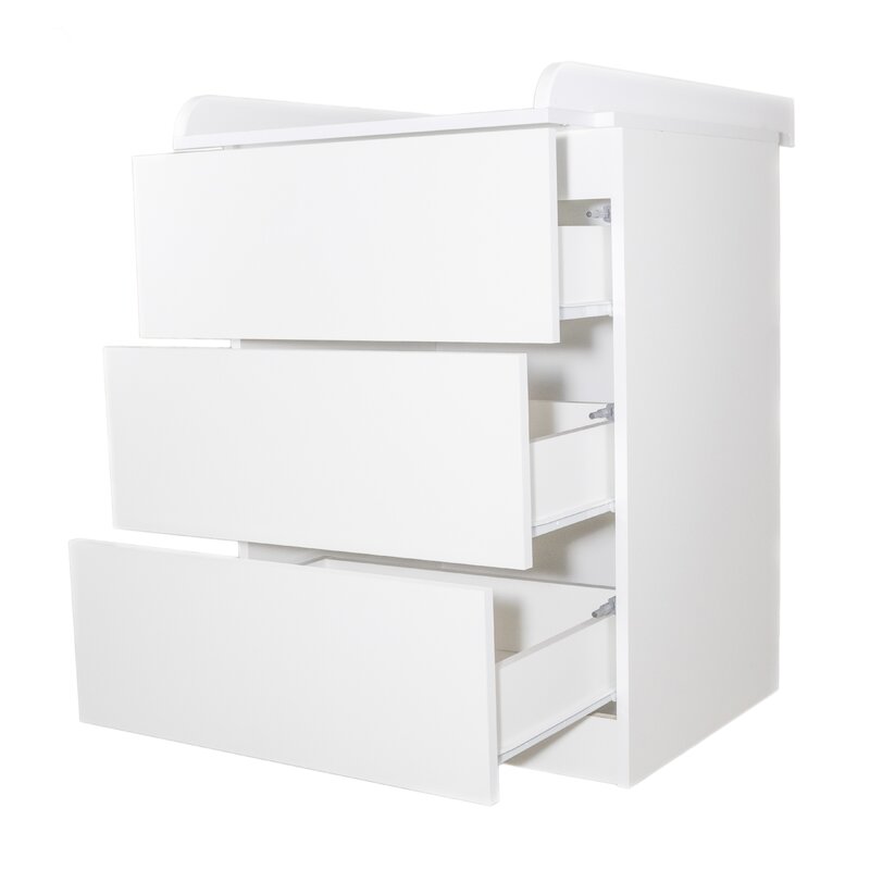 Comoda Qmini Wladi cu masa pentru infasat si 3 sertare alb