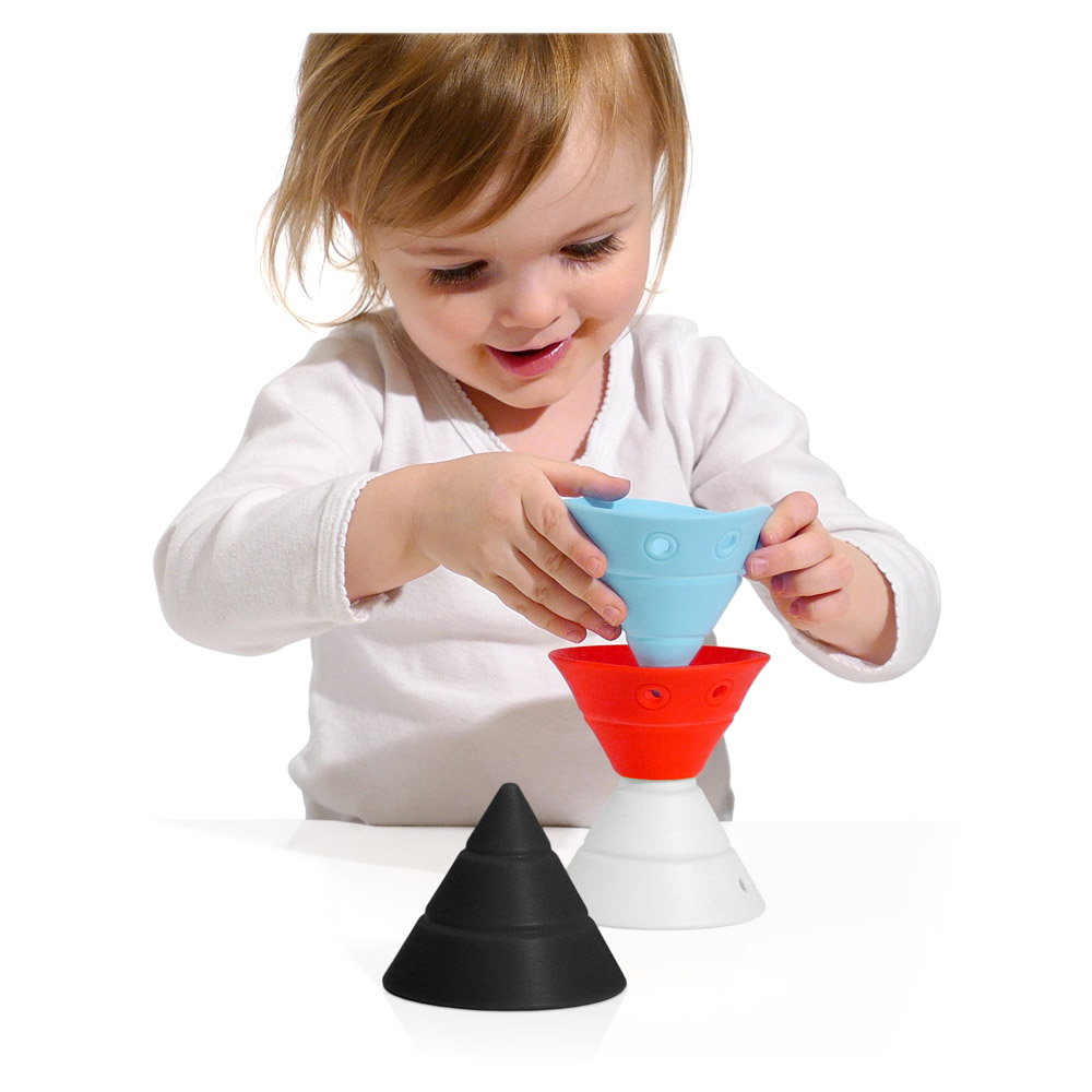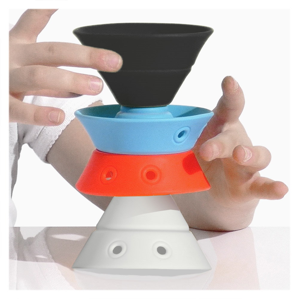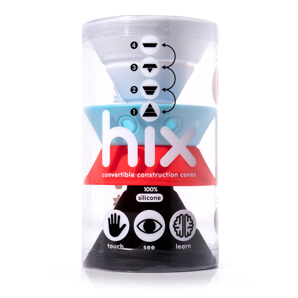 • Hix Nordic Colors este o jucarie de constructie noua, formata din patru conuri convertibile din cauciuc siliconic elastic. Fiecare con se transforma in patru forme de baza care pot fi stivuite si asezate intr-o multitudine de configuratii diferite.