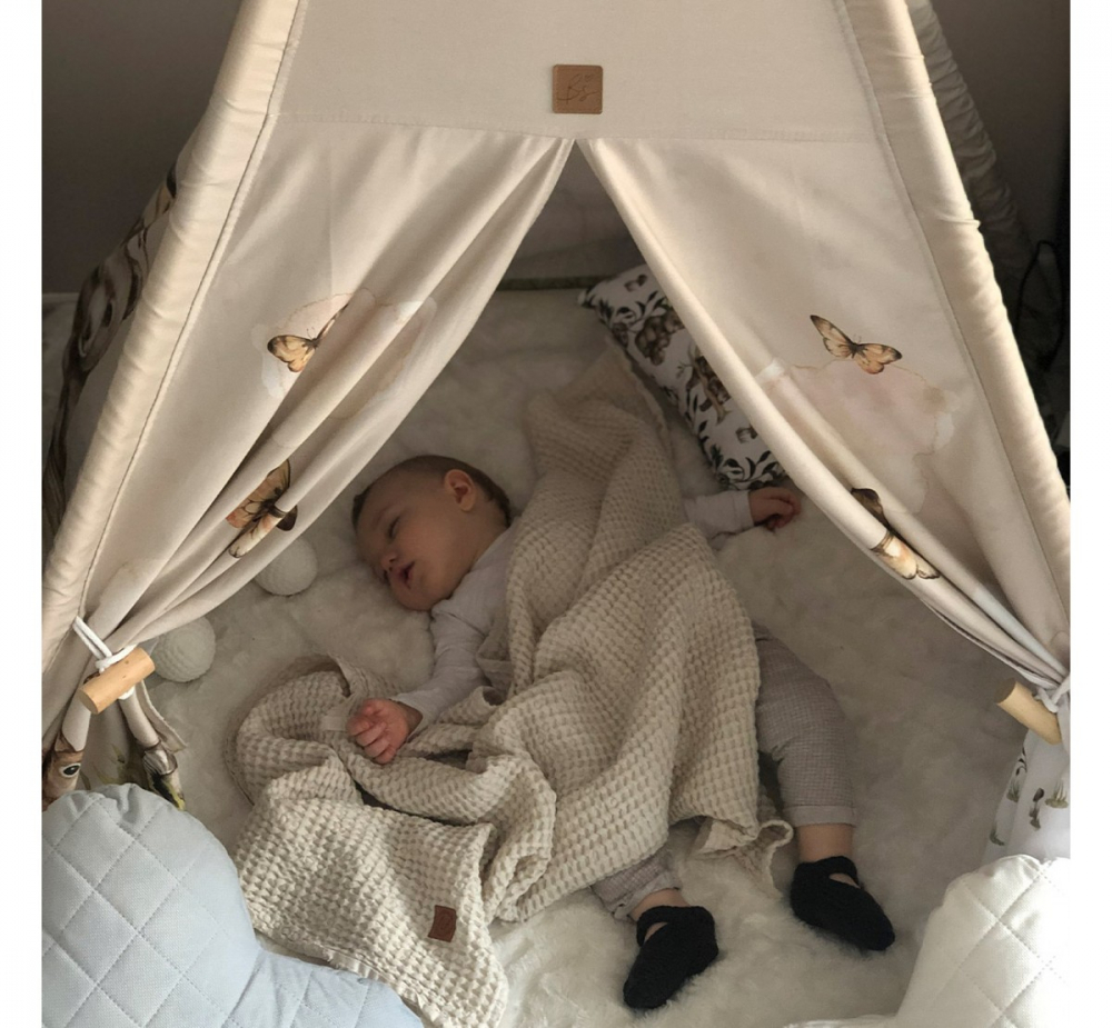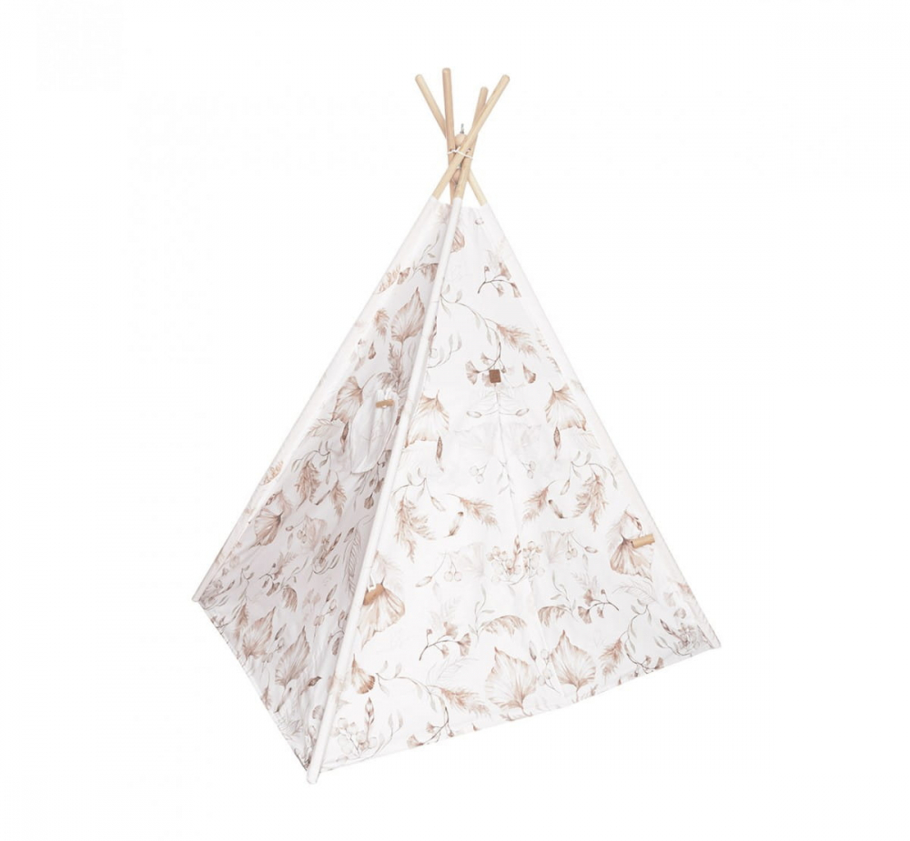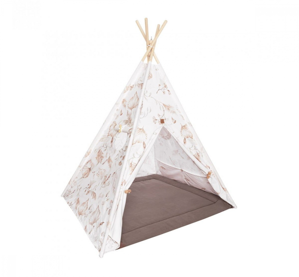 Cort de joaca Boho BabyStepsdin bumbac cu saltea impermeabila inclusa si 4 perne Indian Teepee