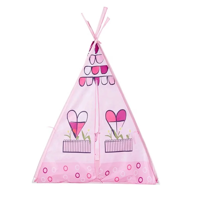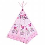 Cort de joaca pentru copii NiceKids, portabil si usor asamblabil, dimensiune 100 x 140 cm, Tepee Pink Hearts