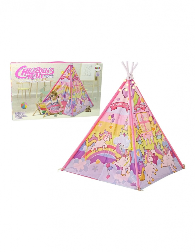 Cort indian de joaca pentru fetite roz cu unicorni 10514