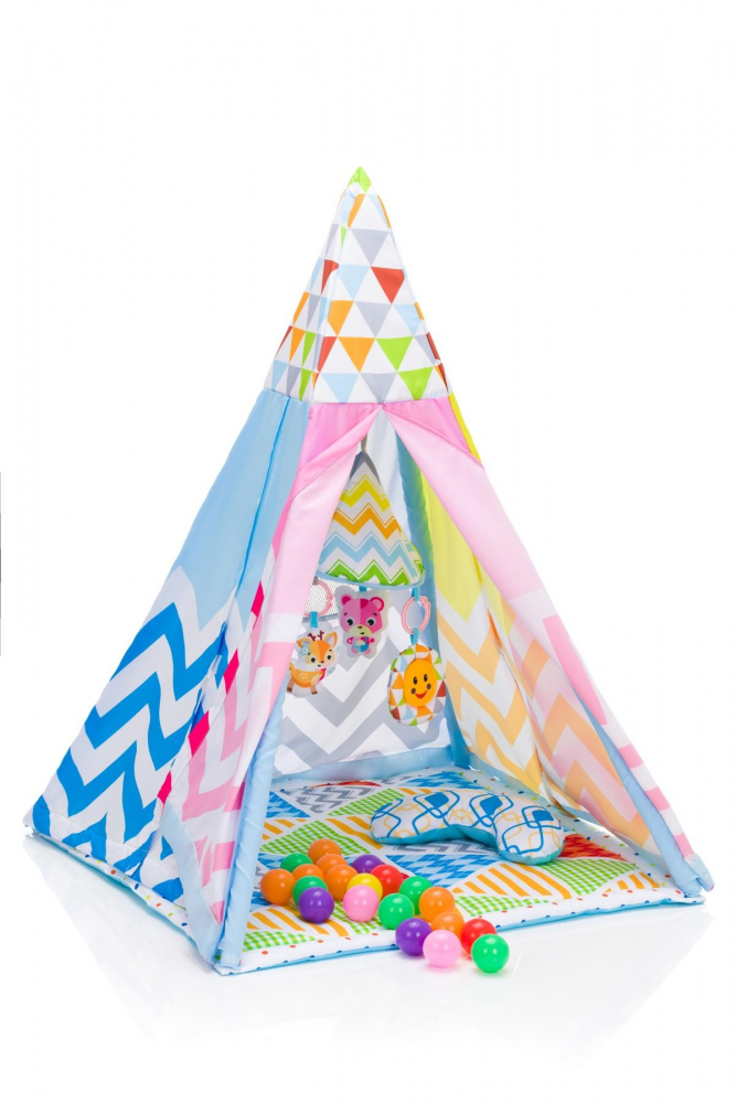 Cort pentru copii Fillikid Tippy Pink cu carusel muzical, bile si perna pentru gat