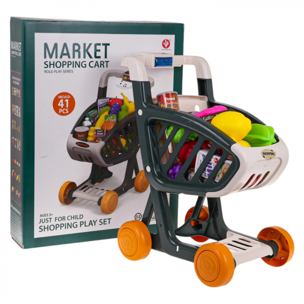 Cos de cumparaturi interactiv cu 41 accesorii Shopping Market Green