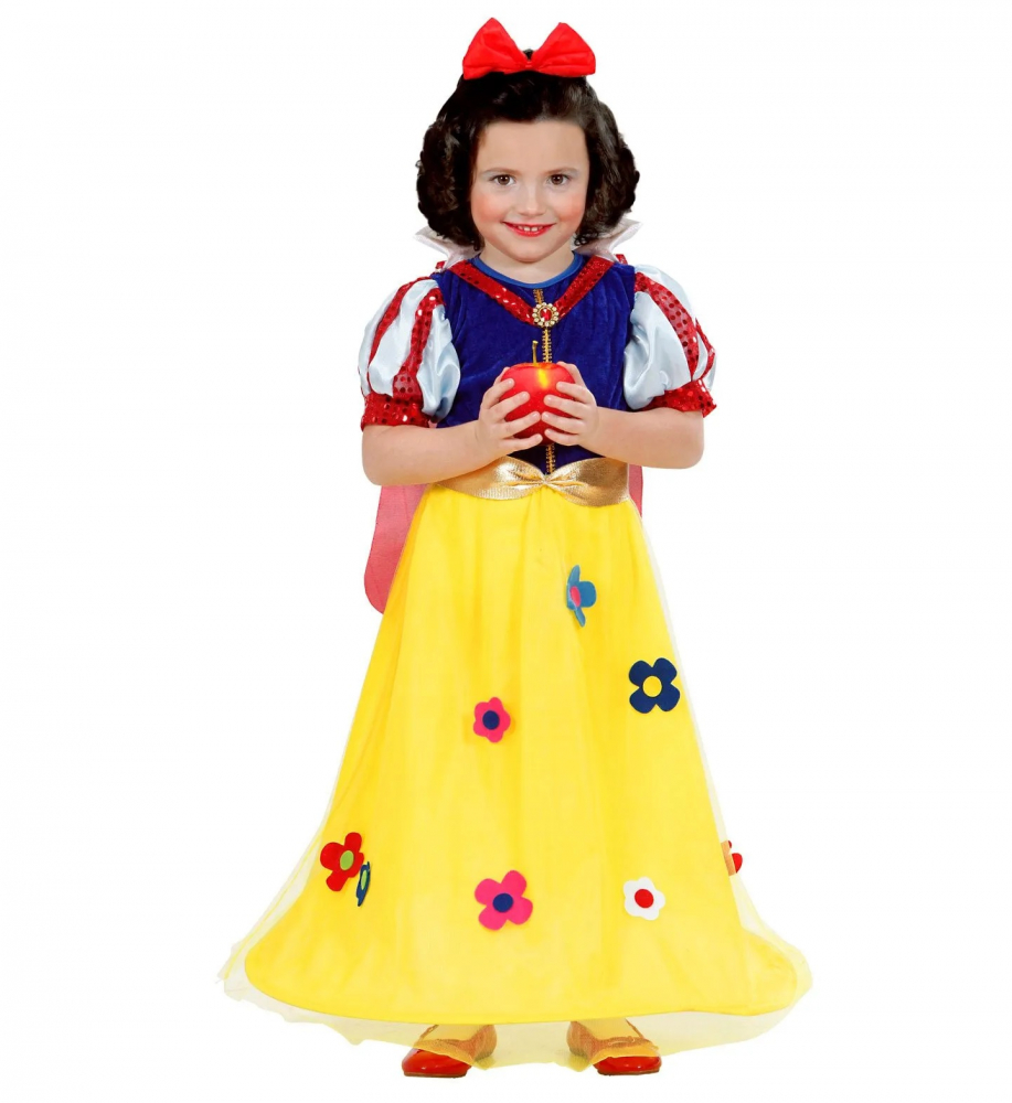 Merele sunt slabiciunea ei, insa ramane o frumoasa printesa! Costumul de Alba ca Zapada include rochita cu crinolina si floricele aplicate alaturi de mica pelerina. Aceasta deghizare este disponibila pentru 2 categorii de varsta: 1-2 ani (inaltime 98 cm) si 2-3 ani (inaltime 104 cm).