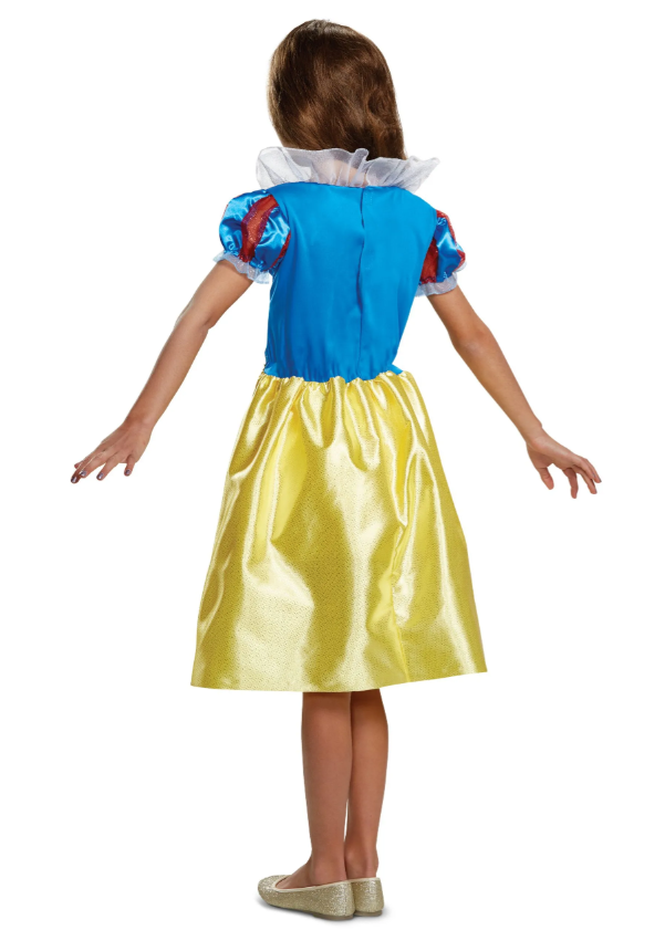 Costum Alba Ca Zapada Disney include rochia cu maneci usor bufante, imaginea personajului aplicata intr-o camee si guler alb din organza. Costumul Disney Alba Ca Zapada licentiat este disponbil pentru 3-4 ani (104-110 cm inaltime).