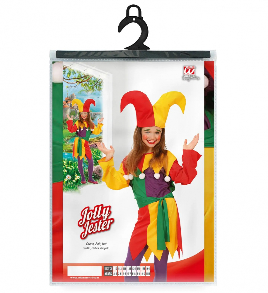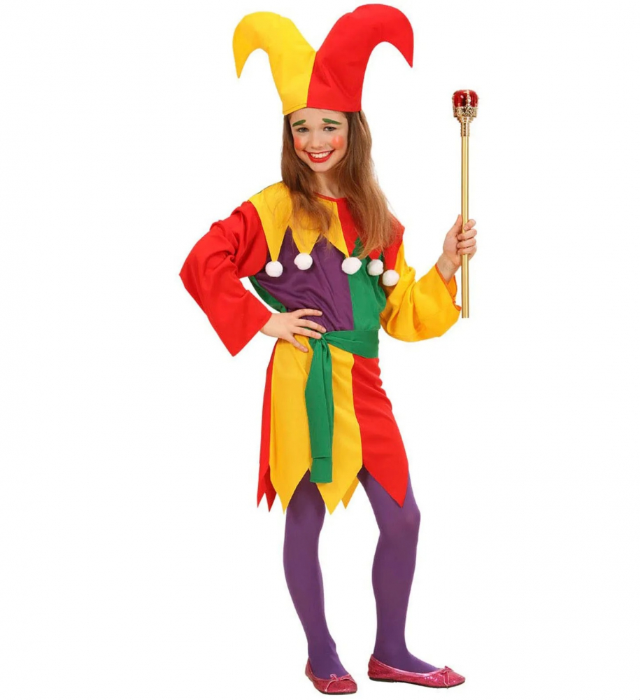 Costum Arlechin include rochia colorata, centura verde si palaria in doua culori. Ciorapii nu sunt inclusi in costumatie. Deghizarea este disponibila pentru copii in 3 categorii de varsta: 5-7 ani (128 cm inaltime), 8-10 ani (140 cm inaltime) si 11-13 ani (158 cm inaltime). Costum Arlechin este o deghizare in spirit comic care ii va amuza pe cei din jurul ei. Arlechinul este un personaj comic din vechea comedie italiana, costumat in haine colorate si pestrite, care avea rolul de-ai face pe cei din jur sa rada. Intr-un astfel de costum copilul tau va atrage atentia si ii va face sa rada pe cei din jur, dar nu de el, ci cu el.
