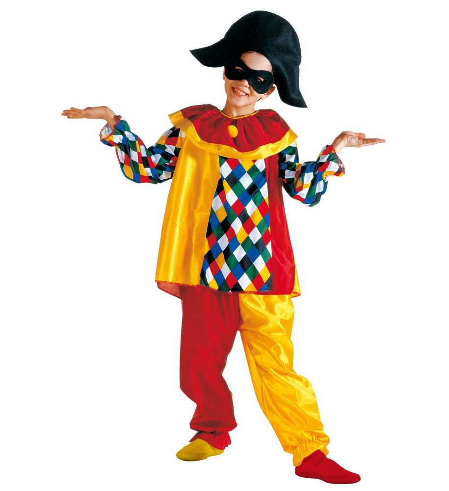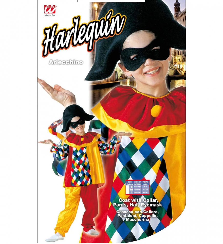 Micutul tau va aduce zambete pe buzele tuturor! Costumul de arlechin contine bluza, pantalonii, masca si palaria.
