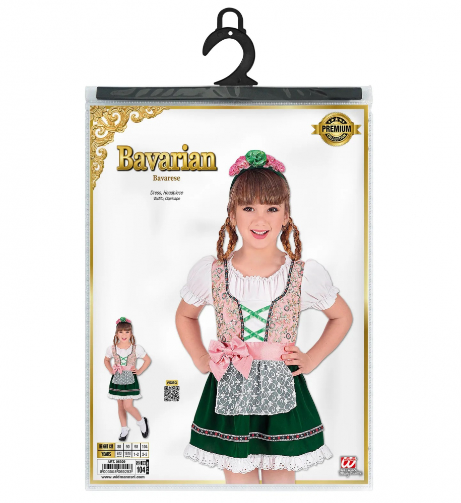 Costum Bavarez Fete include rochia si bentita cu flori aplicate.
