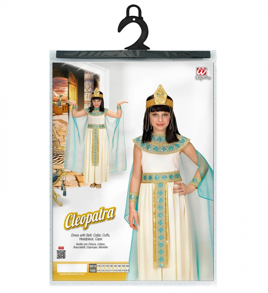 Costumul Cleopatra include rochia, centura, gulerul, bratarile cu voal aplicat si bentita.