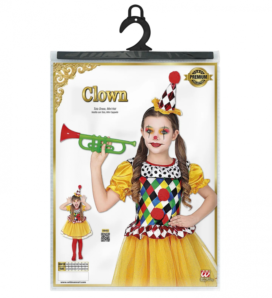 Costum Clown Fetita Premium include rochia colorata cu tul aplicat si mini palaria care se prinde cu clame. Costumul face parte din colectia Premium ce implica o mare atentie la detalii, iar materiale folosite fiind de o calitate superioara.